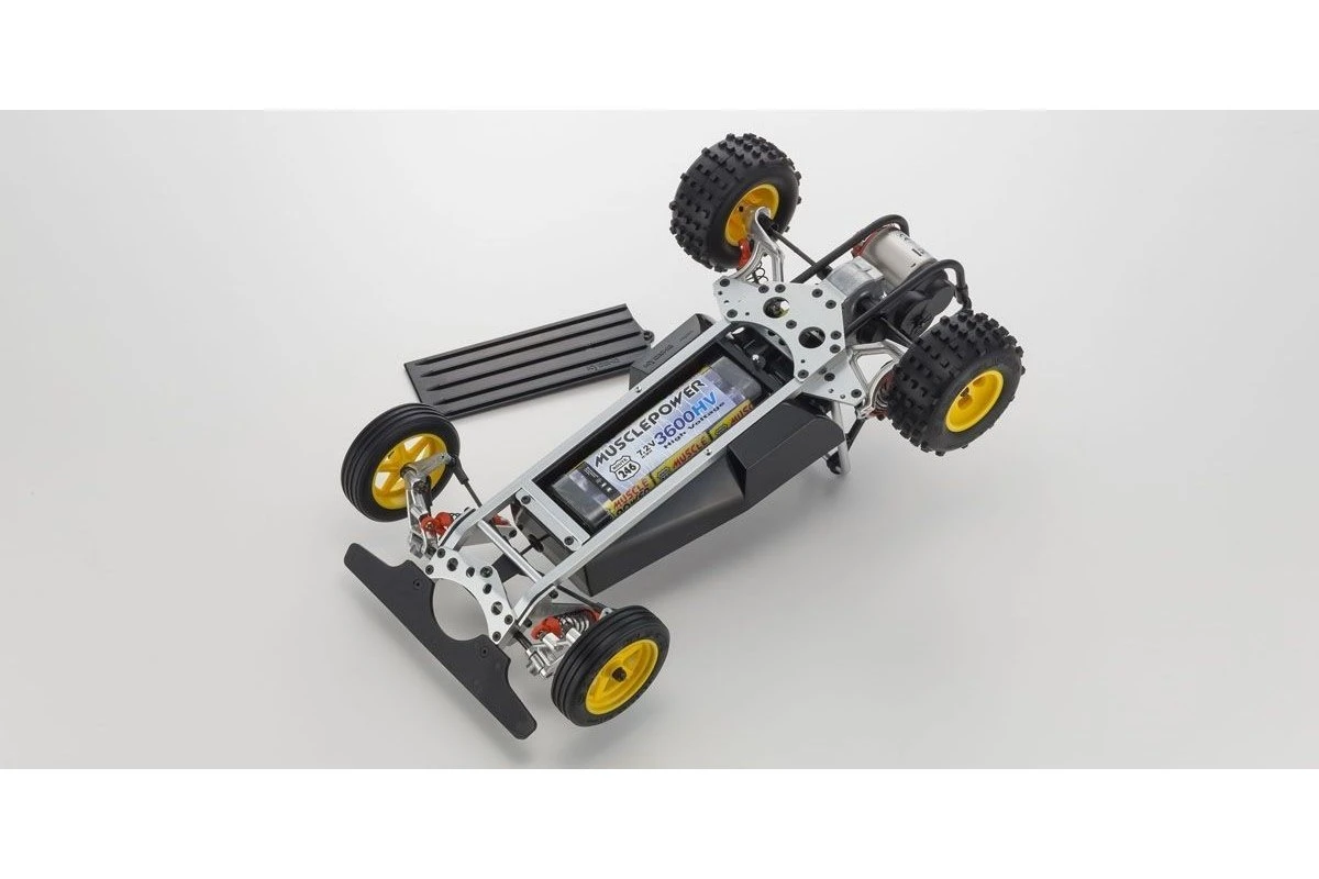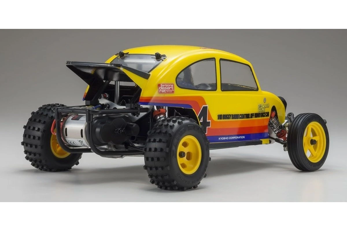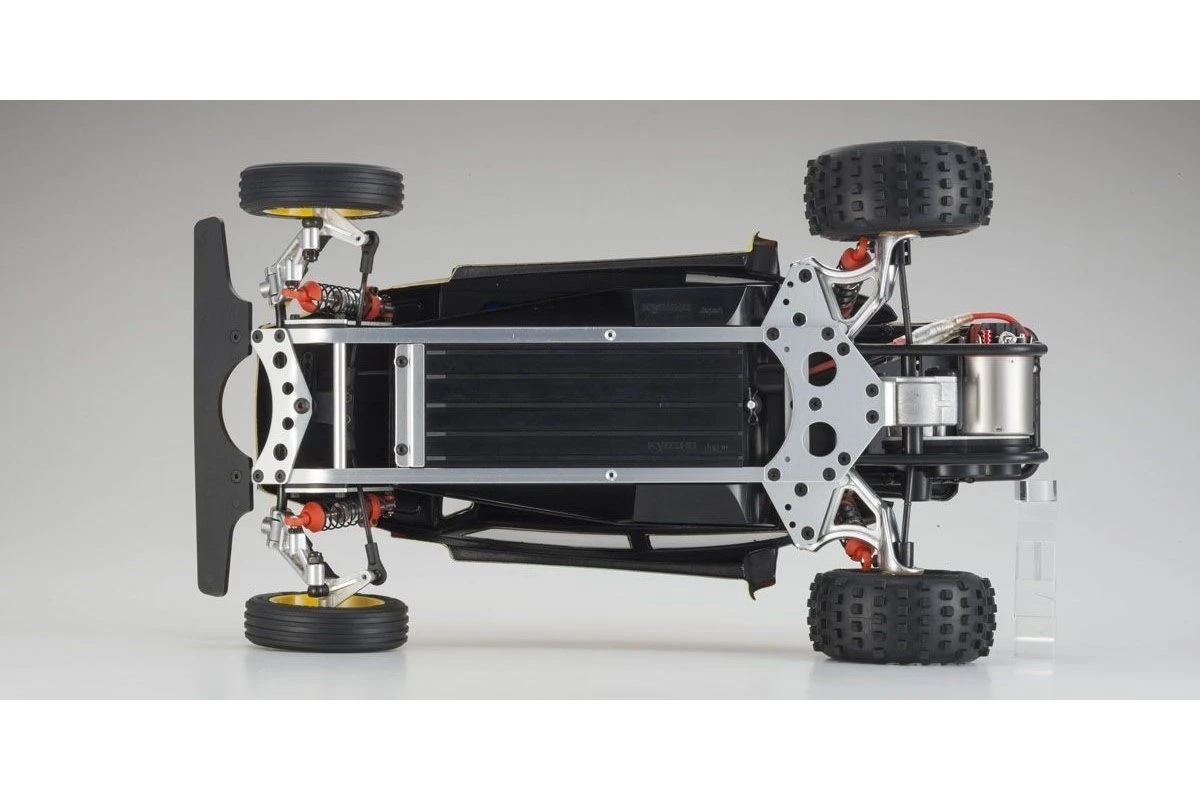 The famous Kyosho Scorpion and Baja Beetle combined into one legendary off-road machine that became synonymous with electric buggy racing in the 1980’s, a name that is still known around the world today. Now, in honour of the original Scorpion and its many fans, the Beetle makes a triumphant return with the advanced Scorpion 2014 chassis featuring the same basic ladder frame 2WD structure as the original, but with the latest technology and components. from the kit, making assembly easier and the finished chassis lighter and more rigid. From experts familiar with the Scorpion’s standard of performance to present-day drivers unaware of the Scorpion legend, all will enjoy the Scorpion experience that inspired so many.