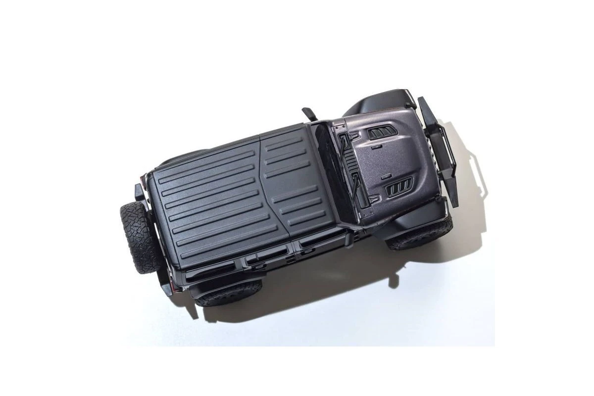 In the signature Jeep® Wrangler lineup, the Rubicon boasts the strongest off-road performance. With black over-fenders, front grille with dark grey accents, and the distinctive Jeep® round headlights, the formidable styling of the black hardtop is immaculately reproduced in a model that rests on the palm of your hand.