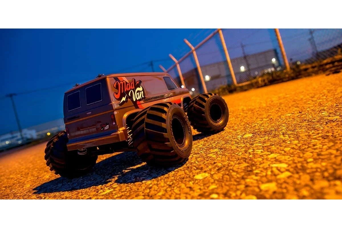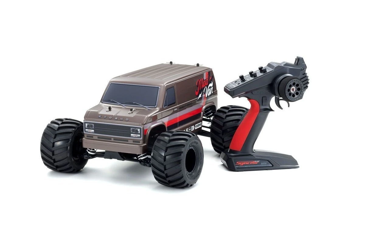Designed in the image of an American full-size van, Kyosho’s fun MAD VAN model combines retro body styling with a light and sporty chassis for pure R/C enjoyment. The simple design of the FZ02L-BT chassis uses fewer parts for easy maintenance. It delivers strength and rigidity through front & rear stiffeners with reinforced ribbing and optimised material formulation on critical components. The near-symmetrical design and optimal front-rear suspension balance work in combination with the power source to produce excellent control and maneuverability for this type of model. Front and rear differentials, oil shocks and full ball bearing specifications provide performance efficiency to complement its high durability and impact resistance. Soft compound, wide large-diameter tyres with inner sponges feature rounded shoulders to produce secure grip, not only off-road but on sealed surfaces too, so that this van can be enjoyed just about anywhere! As the MAD VAN is a fully pre-assembled Readyset, only 4 x AA batteries for the transmitter, battery for the chassis, and a battery charger are required for fun to begin. Whether going off-road or on-road, the MAD VAN produces dynamic performance to be enjoyed with its unique style.
