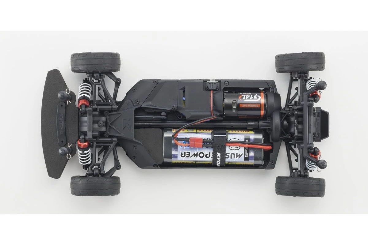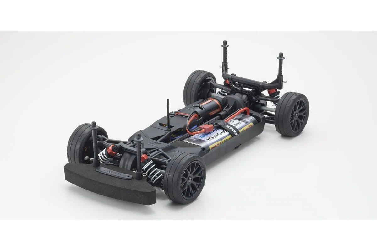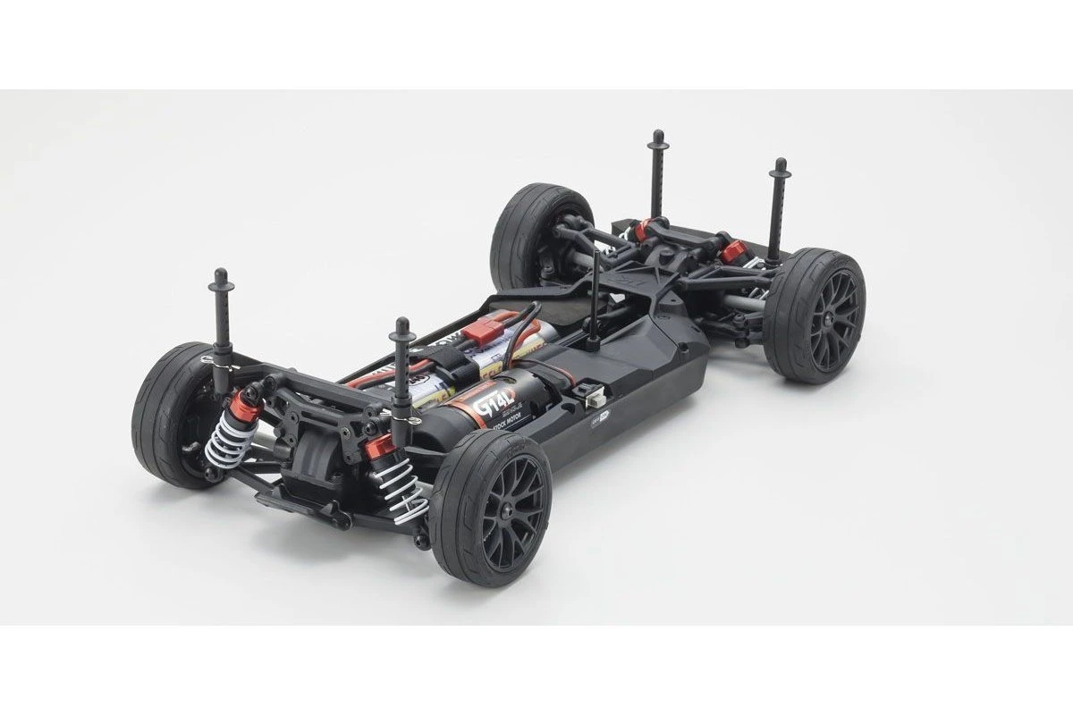 For the pure enjoyment of R/C car driving, the combination of a beautifully reproduced car body with the FAZER series chassis can’t be beaten. Kyosho has taken its standard touring car chassis and given it a full model makeover that has evolved performance to a new level. A simplified design with fewer parts has improved maintenance efficiency and reduced weight while core strength and rigidity has been increased through new materials and ribbing and stiffeners on front and rear. In addition, the symmetrical chassis design synergizes excellent front-rear balance through the suspension with responsive control, irrespective of power source. Featuring slipper clutch, front & rear gear differentials, oil shocks and full ball bearing specs, the high durability and impact resistance allows drivers to unleash the full potential of the chassis. Brake disc wheel hubs with two different offsets (0mm, +5mm) provide compatibility with 190mm and 200mm width body styles and allows the wheelbase to be adjusted to 260mm by replacing some parts (sold separately) for compatibility with other 1/10 scale body styles, in addition the body included. The Readyset package comes fully assembled and includes everything except charger and battery for the chassis, and batteries for the transmitter.