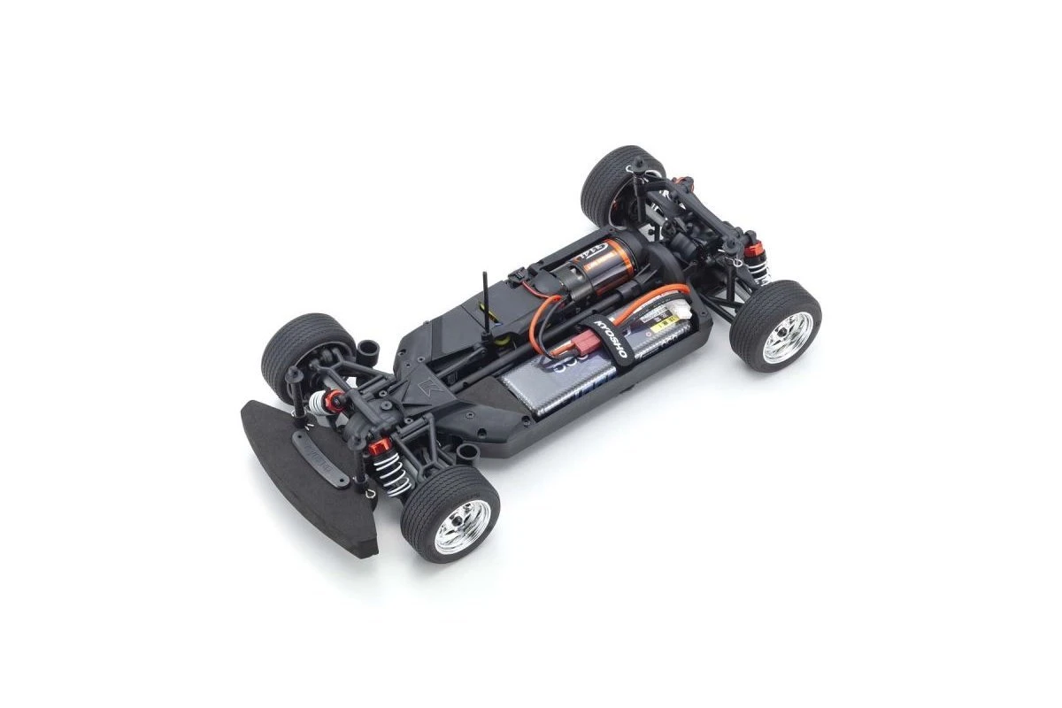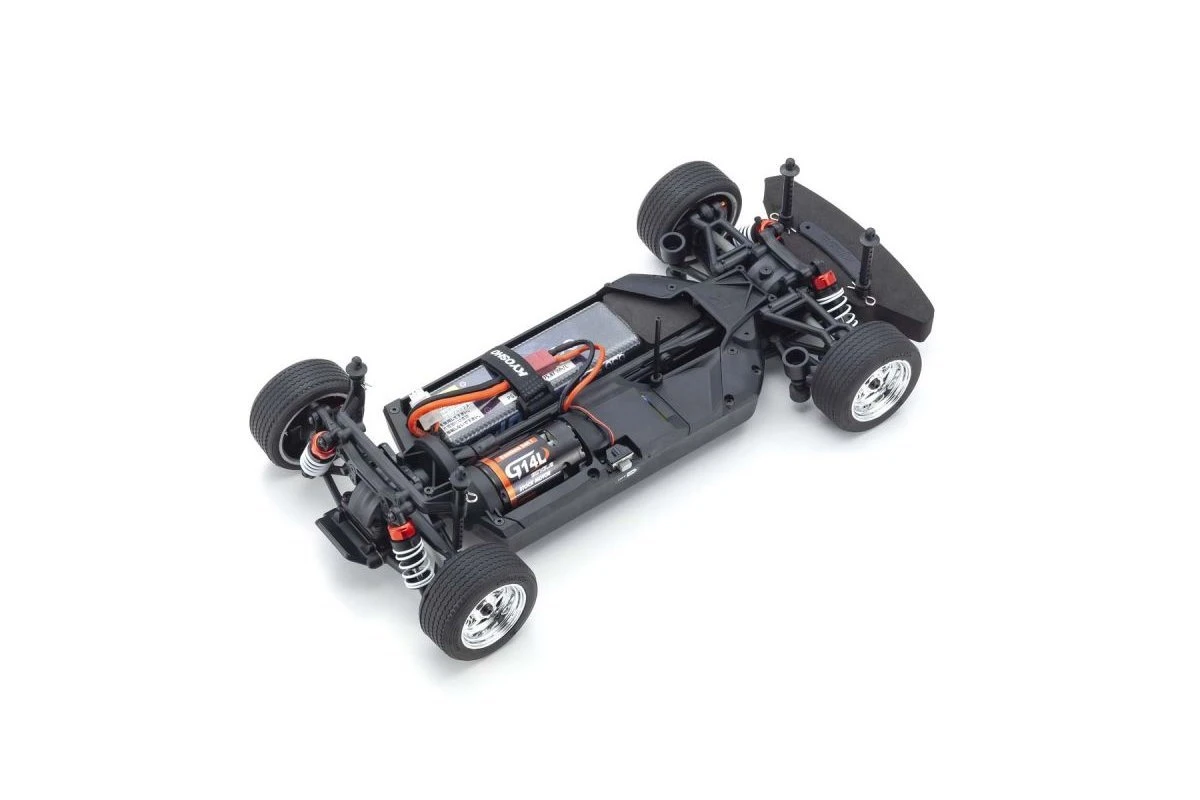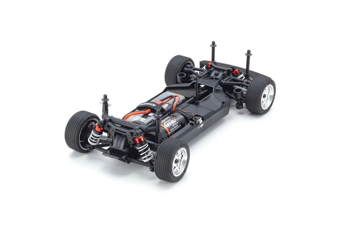 For the pure enjoyment of R/C car driving, the combination of a beautifully reproduced car body with the FAZER series chassis can’t be beaten. Kyosho has taken its standard touring car chassis and given it a full model makeover that has evolved performance to a new level. A simplified design with fewer parts has improved maintenance efficiency and reduced weight, while core strength and rigidity has been increased through new materials and ribbing and stiffeners on front and rear. In addition, the symmetrical chassis design synergises excellent front-rear balance through the suspension with responsive control, irrespective of power source. Featuring slipper clutch, front & rear gear differentials, oil shocks and full ball bearing specs, the high durability and impact resistance allows drivers to unleash the full potential of the chassis. Brake disc wheel hubs with two different offsets (0mm, +5mm) provide compatibility with 190mm and 200mm width body styles and allows the wheelbase to be adjusted to 260mm by replacing some parts (sold separately) for compatibility with other 1/10 scale body styles, in addition the body included. The Readyset package comes fully assembled and includes everything except a charger and battery for the chassis, and batteries for the transmitter.
