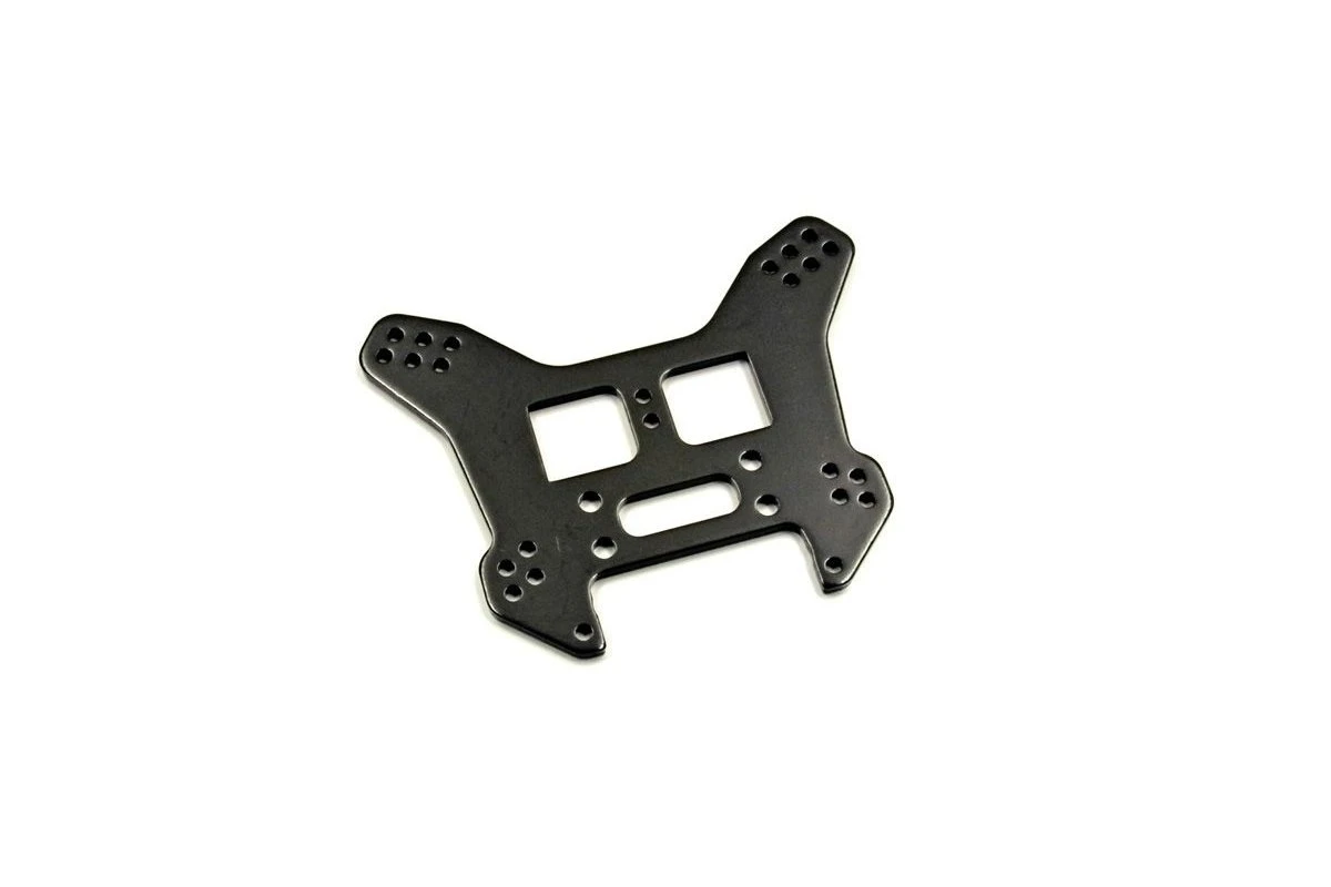 Black anodized aluminium rear shock tower for Kyosho MP7.5 based off-road vehicles.