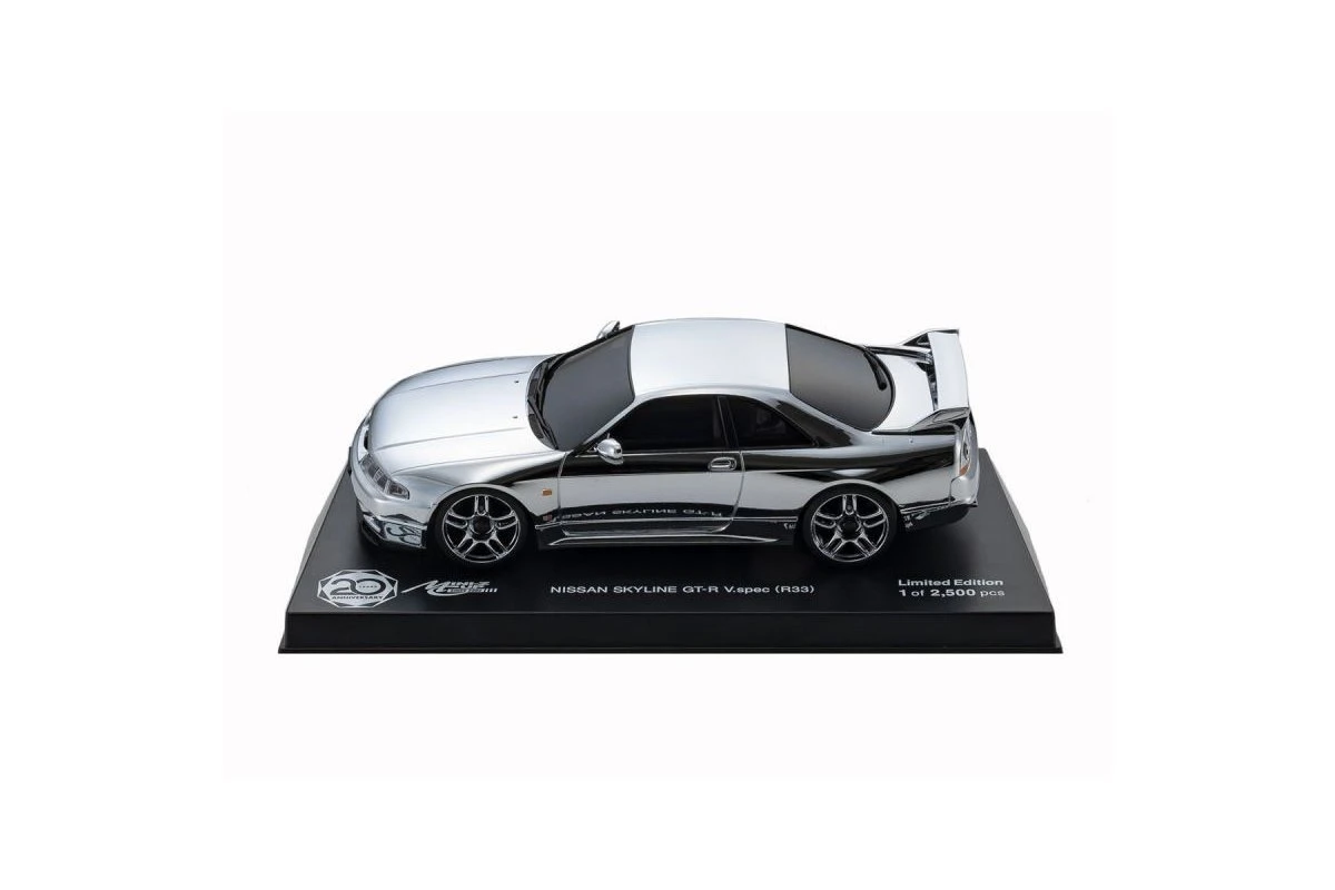 The “Nissan Skyline GT-R V.Spec (R33)” is released as a memorable anniversary model. Including special anniversary model “Chrome Silver” rims and the Kyosho Anniversary logo. The body set comes with “Limited quantity 2,500pcs” & “20th Anniversary of the Minute Cup” on the included pedestal.