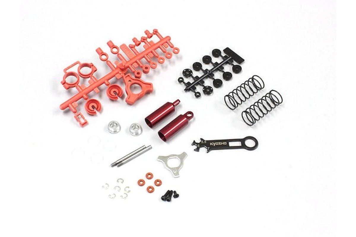 Complete red front shock set for 1/10 Optima 2016 4WD buggy.